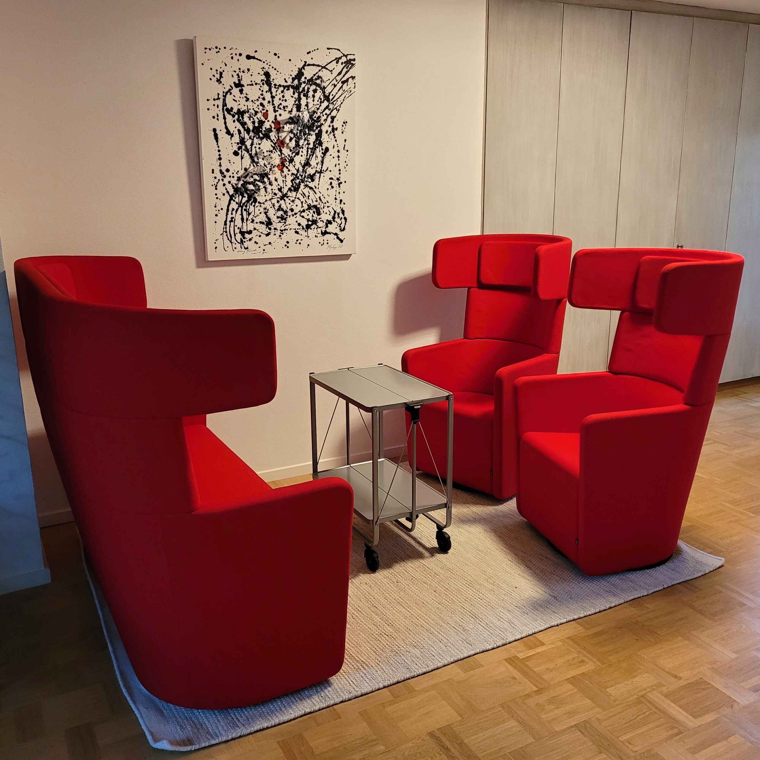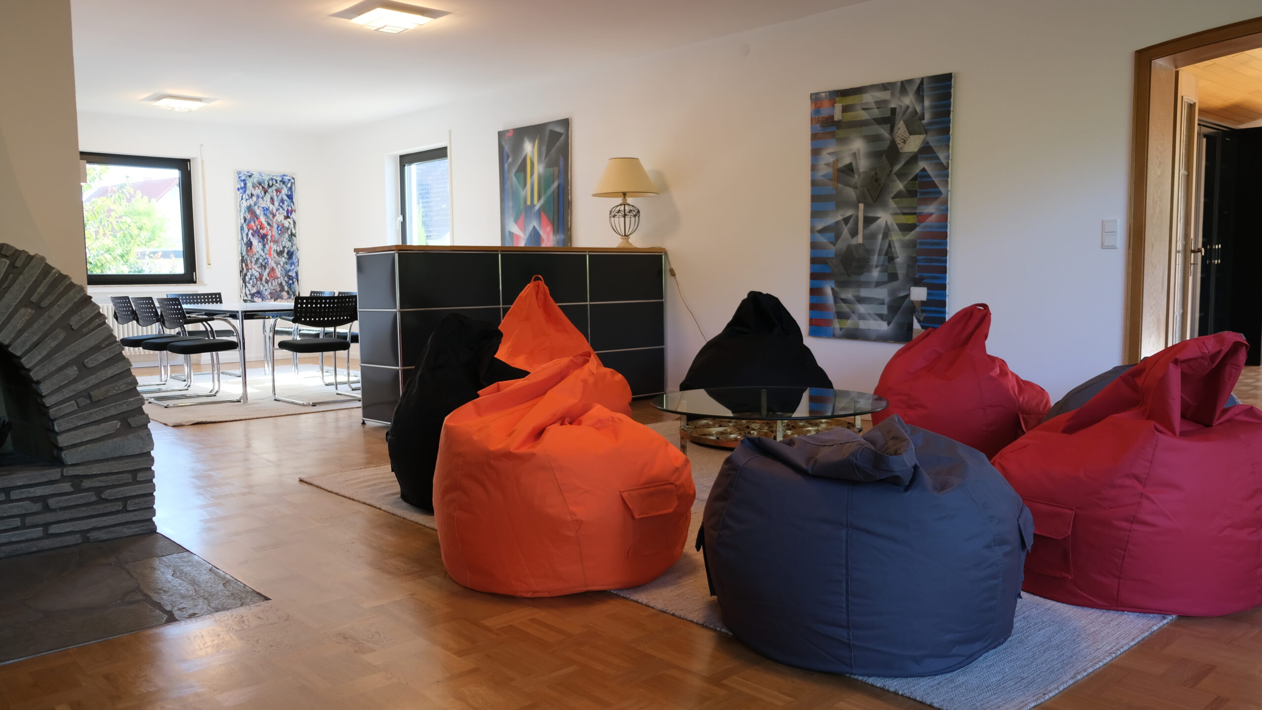 Basisausstattung: BENE, VITRA, USM, Eiermann; Monitore 75″/55″/43″, Flipcharts, Pinnwände, Beamer, Highspeed-WLAN.